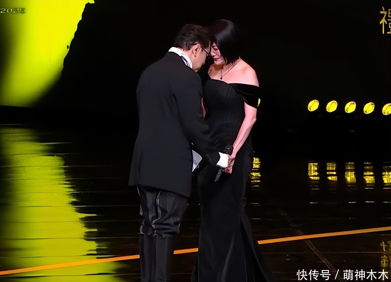 蔡康永率先在舞台上现身,说小S遭遇大S的失去,呼吁大家给她鼓励,随后小S一身黑色礼服现身颁奖礼,刚亮相就泪洒现场,等到走到舞台中央的时候,已经开始捂嘴了,之后和蔡康永头对头默哀。